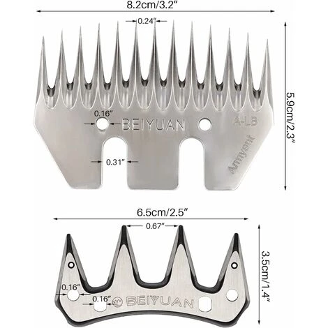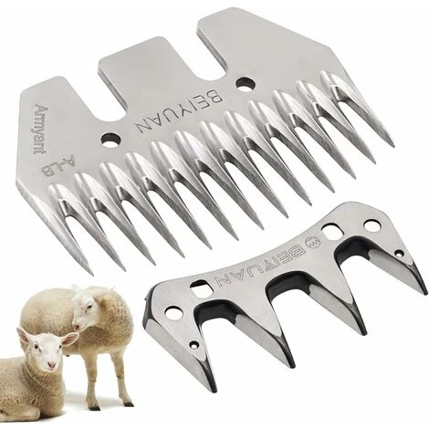 Description du produit : Cette lame de cisaillement pour chèvre est destinée aux cisailles à machines, convient pour le cisaillement des moutons et d’autres animaux avec des pelages fibreux (alpaga, lama, chèvres, etc. ). Restez aiguisé et bien coupé : dispose d’un revêtement avancé et d’un traitement thermique qui maintient les lames tranchantes pour une coupe précise et augmentent considérablement la durée de vie des lames. Caractéristiques : Nom : lame de cisaillement de mouton. Matériau : acier au carbone Poids du produit : 0,1 kg Dimensions de l’emballage : lame de peigne à 13 dents : 8,1 x 5,8 cm ; cutter de rechange à 4 points : 6,6 x 3,2 cm Contenu : 1 cutter de rechange à 4 points. 1 x 13 dents lame peigne Remarque : Veuillez prêter attention aux dimensions du produit sur l’image du produit et voir si elles s’adaptent à votre tondeuse électrique à moutons.
