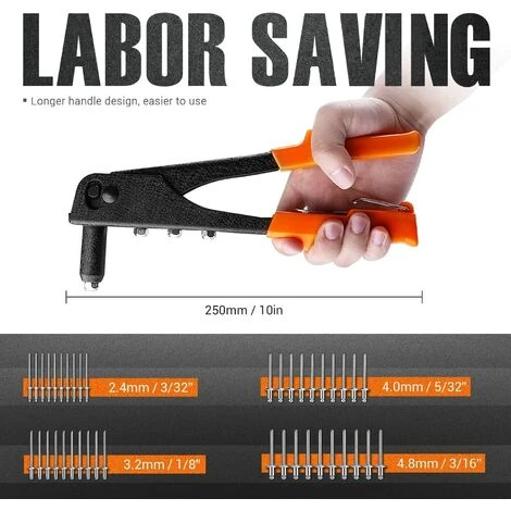 - Facile à utiliser : pistolet à riveter manuel de 25,4 cm, plus d’économie de travail, une poignée plus longue. Poignées rembourrées en caoutchouc thermoplastique antidérapant (TPR) pour un ajustement et un confort maximum.