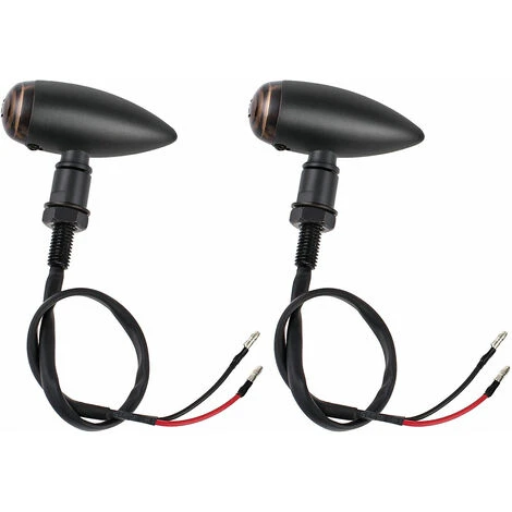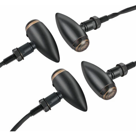 - Les clignotants texturés en métal noir pour moto Bullet de 4 PCS sont de conception étanche et antichoc. Chaque feu a 2 fils, peut être utilisé pour les feux de position, les clignotants auxiliaires ou les feux de route.Universel Convient aux hacheurs Harley, aux croiseurs métriques ou à toute application personnalisée avec carénage de trou de 10 mm.