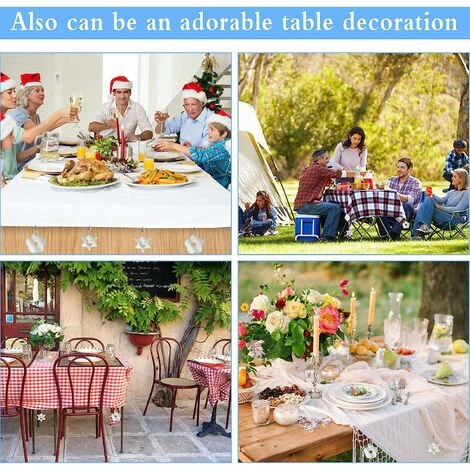 Pinces à nappes adaptéesMatériaux toutes saisons à l’intérieur et à l’extérieur, très bien adaptées pour une utilisation dans divers endroits tels que la famille, la fête, le pique-nique, le buffet, le camping, le restaurant, le balcon et le mariage.