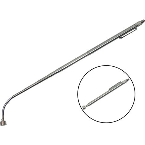 Le cric magnétique télescopique FAMEX 15102 est un outil utile pour la préhension et le levage de petites pièces. Grâce à son design fin et compact, le cric magnétique est facile à transporter et ne devrait manquer dans aucune boîte à outils. En position étendue, la barre de Maget atteint une capacité de charge de 1 kg ! et de 500 g en position normale.