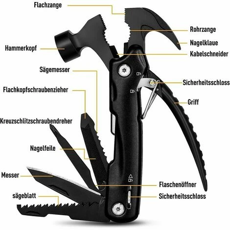 Couleur comme indiquéTaille: 15x 8.5 x 3.6 cmPoids : 240 grammes12 outils en 1]- Cadeau multi-outils marteau 12 en 1 comprenant un mini marteau, un coupe-ongles, une pince, une pince ordinaire, un coupe-fil, un couteau, une scie, un couteau dentelé, une lime, un tournevis à tête plate, un tournevis cruciforme, un ouvre-bouteille et un verrou de sécurité.Cadeaux parfaits pour les hommes]- Le marteau multi-outils Hinshark a 12 fonctions, un multi-outil pratique pour les hommes qui est une idée cadeau parfaite. Pour la fête des pères, anniversaire, la Saint-Valentin, Noël, le jour de Thanksgiving et autres jours fériés, offrez-le à votre mari, grand-père, père, petit ami, ce cadeau de fête des hommes le fera sourire et apportera de la joie à votre donneur de cadeau.Gadget multifonctionnel indispensable – Le marteau à outils est polyvalent et fonctionnel, parfait pour les activités de plein air, la rénovation domiciliaire, le bricolage, les gadgets edc indispensables pour les hommes, populaires auprès des hommes, parfaits comme cadeau de fête des pères.Portable et léger – Il mesure seulement 5 pouces de hauteur, avec une construction en acier inoxydable robuste, ergonomique et légère, tient confortablement dans votre main. Livré avec un sac en nylon portable, il est donc si facile à transporter que vous pouvez emporter avec vous lorsque vous êtes à extérieur.