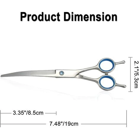 Matériel : Acier inoxydable de haute qualité avec revêtement en titane pour plus de durabilité et de style, garantissant une durabilité fiable. Taille : Courbé vers le haut ; 17,8 cm pour toute la longueur des ciseaux, 7,6 cm pour la longueur de la lame, bord tranchant et solide. Caractéristique : Une poignée ergonomique rembourrée et des repose-doigts spacieux ont été ajoutés aux ciseaux de coupe de poils de chien pour éviter les glissades. Chacun est livré avec un chiffon de nettoyage. être utilisé comme ciseaux pour le visage de chien, conçu de manière ergonomique pour répondre à tous les besoins et exigences de toilettage de votre animal. Couleur : bleu Les produits incluent : 1pcTaille : ciseaux 19,3 cm