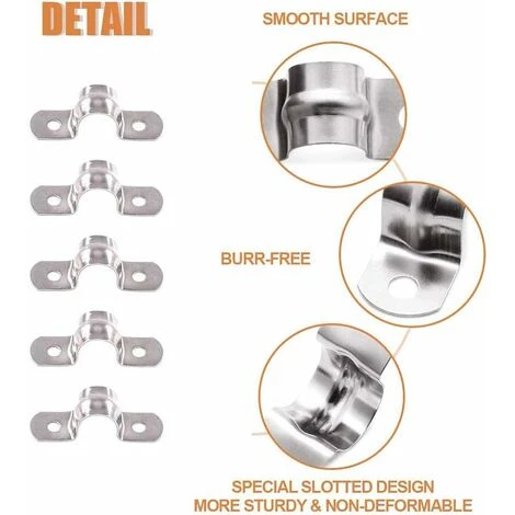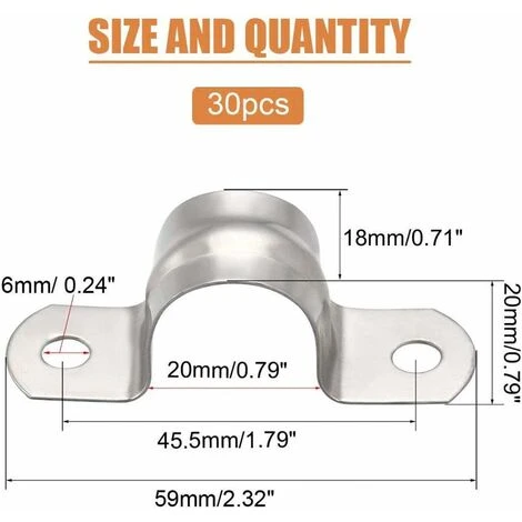 Emballage: Total 30 pièces Collier de serrage en U.Convient pour tuyau de 20 mm de diamètre, diamètre du trou de montage: 6 mm, largeur: 18 mm, épaisseur: 0,6 mm