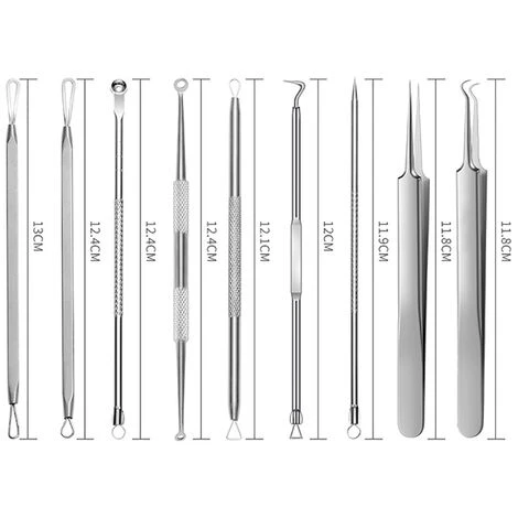 Outils professionnels de suppression des points noirs : Fabriqué en acier inoxydable de haute qualité et avec un revêtement antibactérien, le kit anti-boutons convient à tous les types de peau. Résistant à la corrosion et hygiénique sans problèmes de sensibilité.