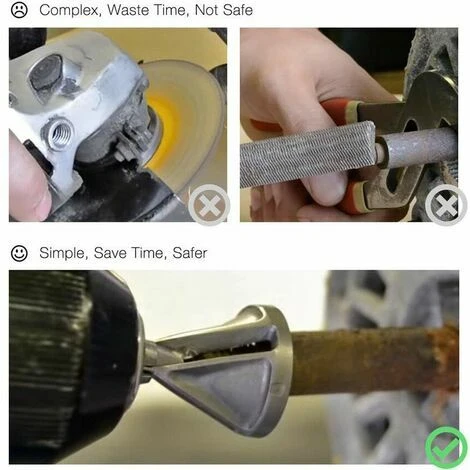 Applications-foret d’ébavurage multifonctionnel, adapté à l’acier inoxydable, à l’acier trempé, à l’acier à faible teneur en carbone, au cuivre, au laiton, à l’aluminium, à la fibre de verre, au bois, au plastique, etc., qu’il soit fileté ou non.