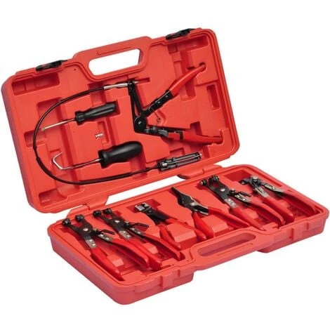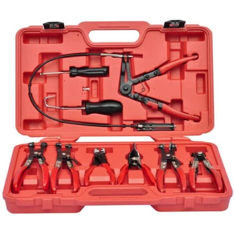 Coffret de pinces à colliers est idéal pour le montage et le démontage des pinces spéciales pour les systèmes de fluides, systèmes de tuyauterie et une utilisation avec des attaches Clic-R, colliers de serrage, plat et pinces à ressort