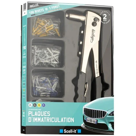 Kit spécial rivetage de plaques d’immatriculation. RIVETS ECLATÉS: pour un assemblage résistant, tout en douceur. POUR TOUS LES VÉHICULES: Les 4 teintes RAL ocielles disponibles dans ce kit permettent de poser les plaques actuelles, tout comme les anciennes plaques sur les véhicules de collection, en conformité avec la règlementation en vigueur