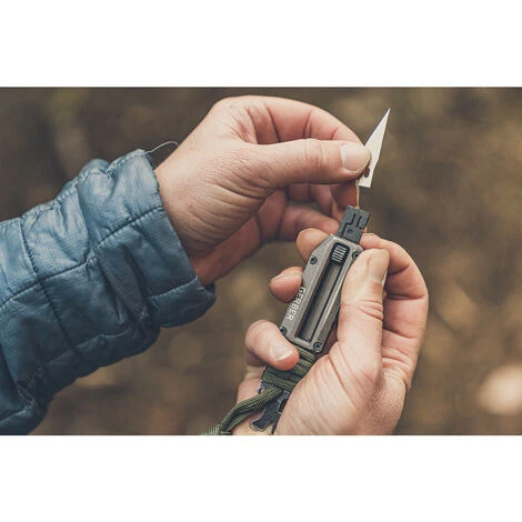 8 fonctions utiles telles que le cutter, le pieds-de-biche en acier inoxydable ou l’ouvre-bouteille avec Paracord, convenant à chaque situation