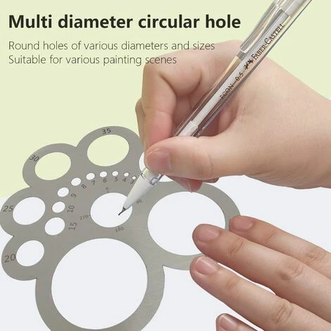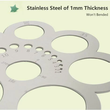 【Modèles clairement marqués】 Il y a clairement gravé avec le diamètre du cercle intérieur et le rayon du cercle extérieur, un total de 17 cercles de tailles différentes, vous permet de dessiner avec précision des cercles de différentes tailles , rendant votre travail plus efficace.