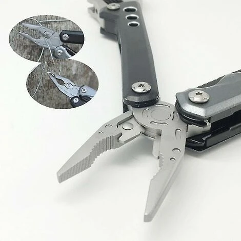 polyvalence.Gadget très cool à transporter. Nom: Pince universelle Taille: Longueur pliée Taille: 16,5 * 6 * 2,5 cm Longueur ouverte Taille: 22 * 17 x 2,5 cm Caractéristiques: Mini couteau multifonctions: Portable Application: Multifonctionnel Couleur: noir + argent Matériau: métal Emballage