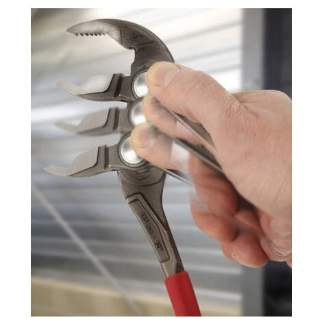 • Ouverture extra large jusqu’à 30% plus grande que les pinces classiques : une seule pince à manipuler au lieu de plusieurs (gain de poids et de place dans la caisse à outils).