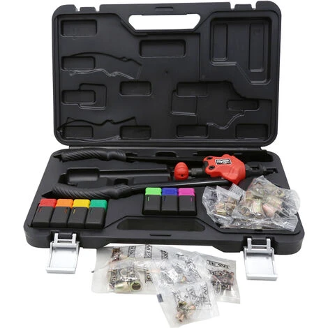| Accessoires | 1 x Pince à rivets de traction 360 mm 1 x Mandrin M3 1 x Mandrin M4 1 x Mandrin M5 1 x Mandrin M6 1 x Mandrin M8 1 x Mandrin M10 1 x Mandrin M12 1 x Malette de transport pratique 10 x écrous à river M3 10 x écrous à river M4 10 x écrous à river M5 10 x écrous à river M6 10 x écrous à river M8 10 x écrous à river M10 10 x écrous à river M12 |