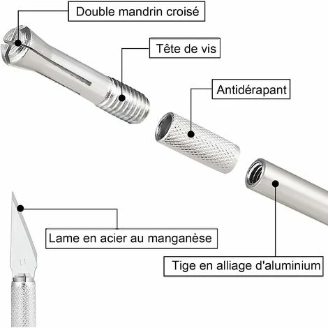 Noter: Comme les lames du cutter de précision sont très tranchantes, couvrez-le immédiatement après utilisation et gardez-le hors de portée des enfants.