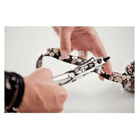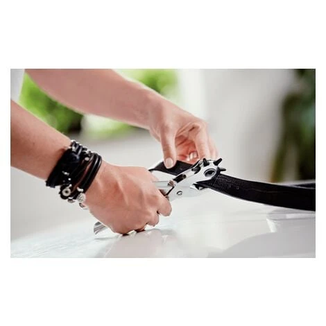 Pince à poinçon polyvalente pour réaliser des poinçons dans le cuir, le textile ou le plastique. La RP03 est facile à manier, conçue pour un usage fréquent et permet d’obtenir de bons résultats. La tête pivotante permet de choisir rapidement le diamètre des poinçons de 2.5 à 4.5 mm. Belle finition chromée et des pièces en acier robuste pour une fiabilité assurée.