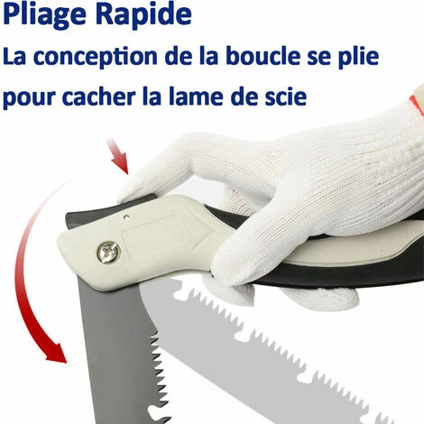 Verrou de securite : notre scie pliante est specialement concue avec un verrou d’engrenage plus solide et plus fiable. Lors de l’ouverture de la scie, la lame se verrouille en place pour la rendre plus robuste lors de l’utilisation de la scie, ne s’effondrera pas ou ne se cassera pas lors de la coupe ou de la fermeture. Notre pliage La lame de la scie a main s’integre parfaitement dans la poignee, de sorte qu’aucune dent n’est exposee lorsqu’elle est fermee – Vous vous sentez plus en securite lorsque vous la portez.