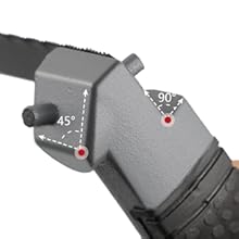 Angle de la scie2-en-1 pour des coupes faciles, deux jeux de positions de lame permettent une coupe droite ou à 45° contre la surface pour une coupe standard et affleurante. | Tension réglableTension réglable du cadre de la scie à métaux. Le bouton réglable à la base de la poignée permet à l’utilisateur de serrer et de détendre facilement la lame de la scie. | Poignée confortableLe caoutchouc antidérapant de la poignée est antidérapant et résistant à l’usure. Cela peut réduire la fatigue des mains et améliorer l’efficacité du travail de l’utilisateur. | Remplacement par un seul boutonLa partie supérieure du cadre en acier plus est dotée d’un couvercle d’ouverture qui permet de relâcher la tension après l’ouverture et de remplacer la lame de scie. Le remplacement de la lame de scie est facile et rapide, sans effort. |