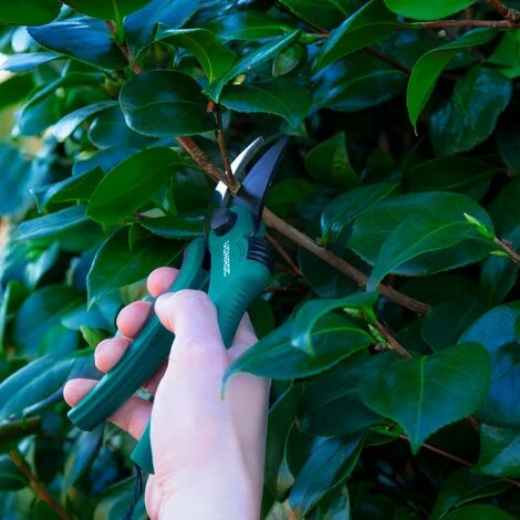 Ce sécateur VONROC peut servir à couper le bois neuf, les fleurs et les jeunes pousses. Le sécateur est idéal pour les branches jusqu’à Ø15mm. Le ciseau fait 20,5 cm de long et les lames font 5 cm. Les lames franches (les lames glissent l’une par-dessus l’autre) garantissent des coupes précises et propres.