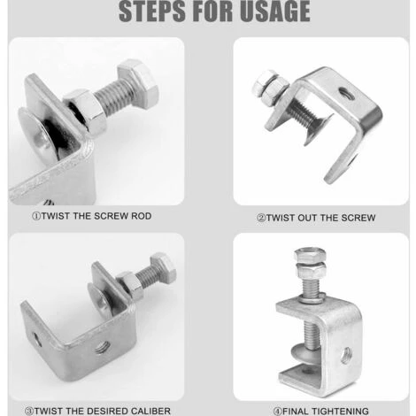 Diverses utilisations:Cette pince en C est conçue pour les menuisiers, les soudeurs,les bricoleurs et les ouvriers du bâtiment.Et peut également être utilisé pour l’assemblage, le collage la fixationet le soudage dans le traitement des métaux et les applications