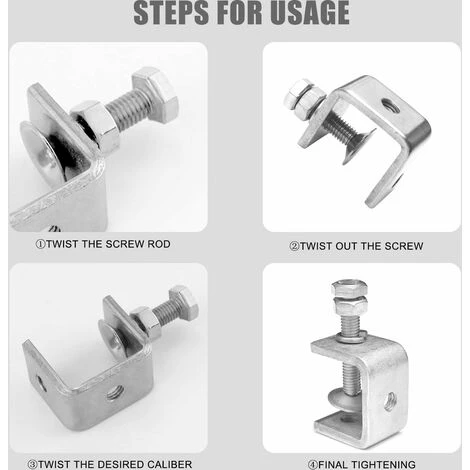 Design pratique: Le haut/côté/bas du support en forme de C est équipé de trous filetés M8,structure de pince est solide pour s’assurer que l’objet serré n’est pas facilement déformé.