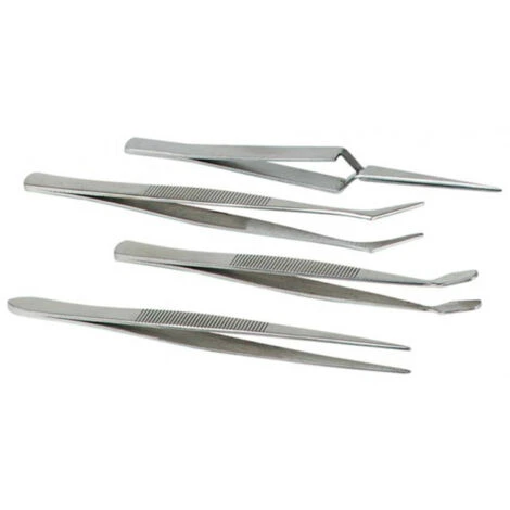 1 x pointe courbée, 1 x plate, 1 x auto-fermante et 1 x standard