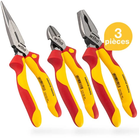 Application : Jeu de pinces standard pour électriciens. Pour les travaux à proximité de pièces sous tension jusqu’à 1 000 V AC.