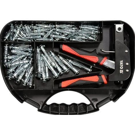 Coffret pince Molly et 50 chevilles Pour le dépôt rapide de chevilles métalliques de type molly dans des plaques de plâtre.